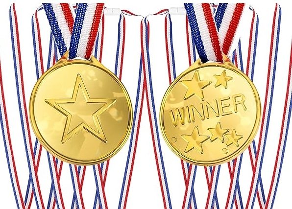 Golden Plastic Winner Medals With Ribbon Necklace For Performances, Competitions and Party Gifts, Sports Day Medals for Children, Adults, Kids Medals